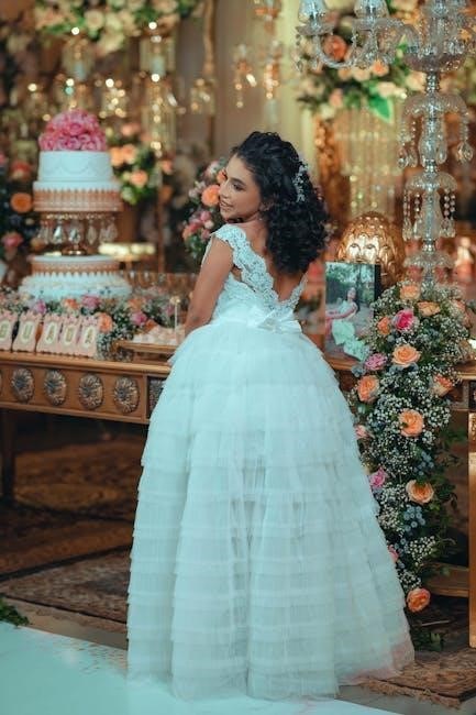 Accessories are equally important, including a tiara, jewelry, and shoes. Coordinate these elements with the dress for a cohesive look. Don’t forget the significance of the changing of the shoes ceremony! Printable guides often offer style inspiration and budgeting templates to manage expenses effectively. Remember to factor in time for fittings and final adjustments.