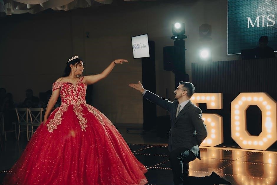 This special dance, often with her father, symbolizes a cherished bond. Your PDF should detail song selection and any planned choreography. It’s a deeply emotional moment, captured in photos and videos. Ensure the dance floor is clear and lighting is optimal. The grand entrance and first dance are foundational elements of a successful quinceañera celebration.
